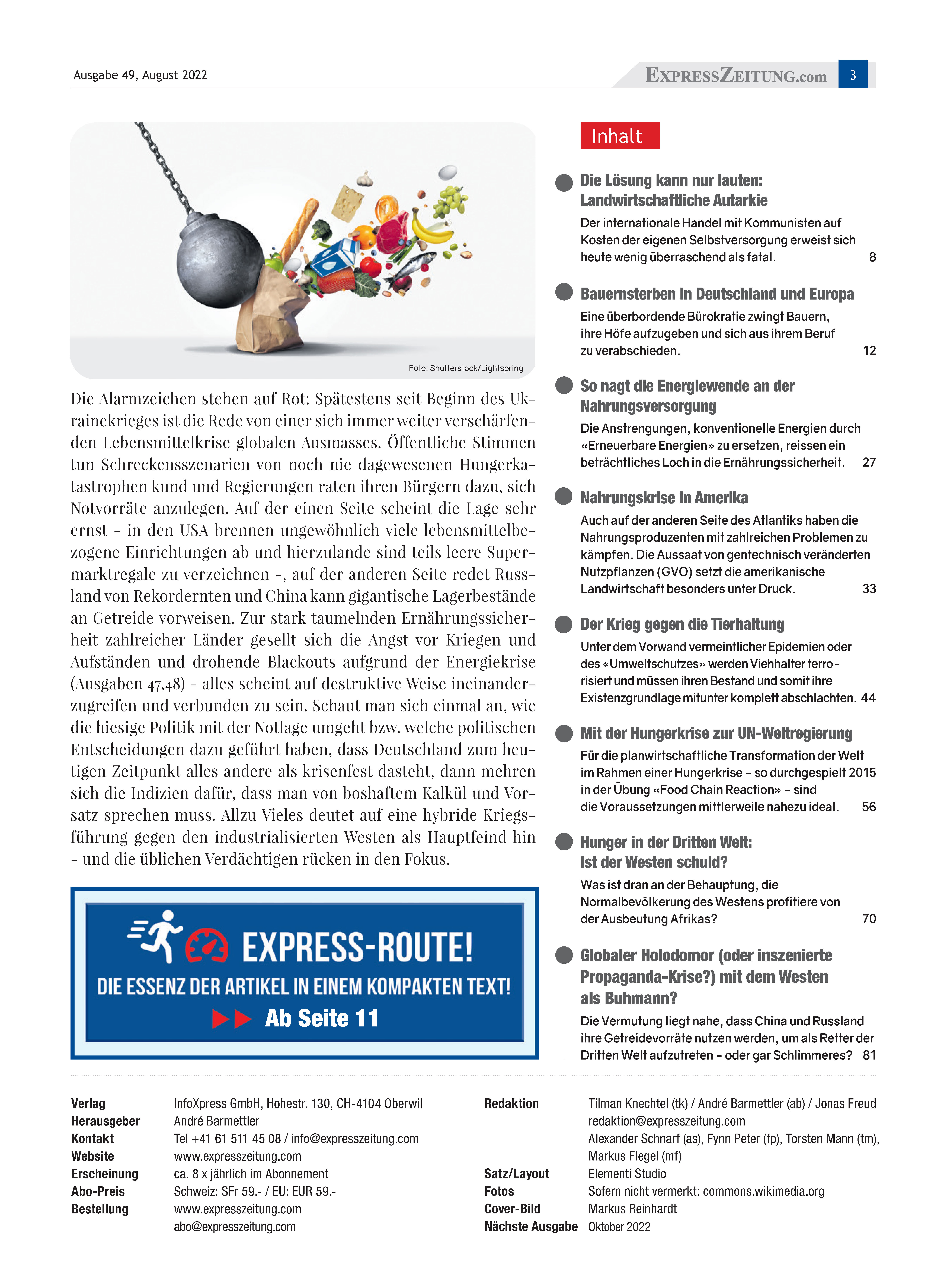 All dies zusammen ergäbe schon einen «perfekten Sturm» mit nie gekannter anti- zivilisatorischer Windstärke, doch als wäre die Wucht dieses Krisen-Orkans nicht schon zerstörerisch genug, addiert sich zu ihm eine aufkommende Lebensmittelknappheit, die, wie all die anderen Krisen, mit hybrider Kriegsführung zur Erreichung übergeordneter Ziele vorsätzlich herbeigeführt wird. Etwas, das in dieser Ausgabe ausführlich belegt werden wird.