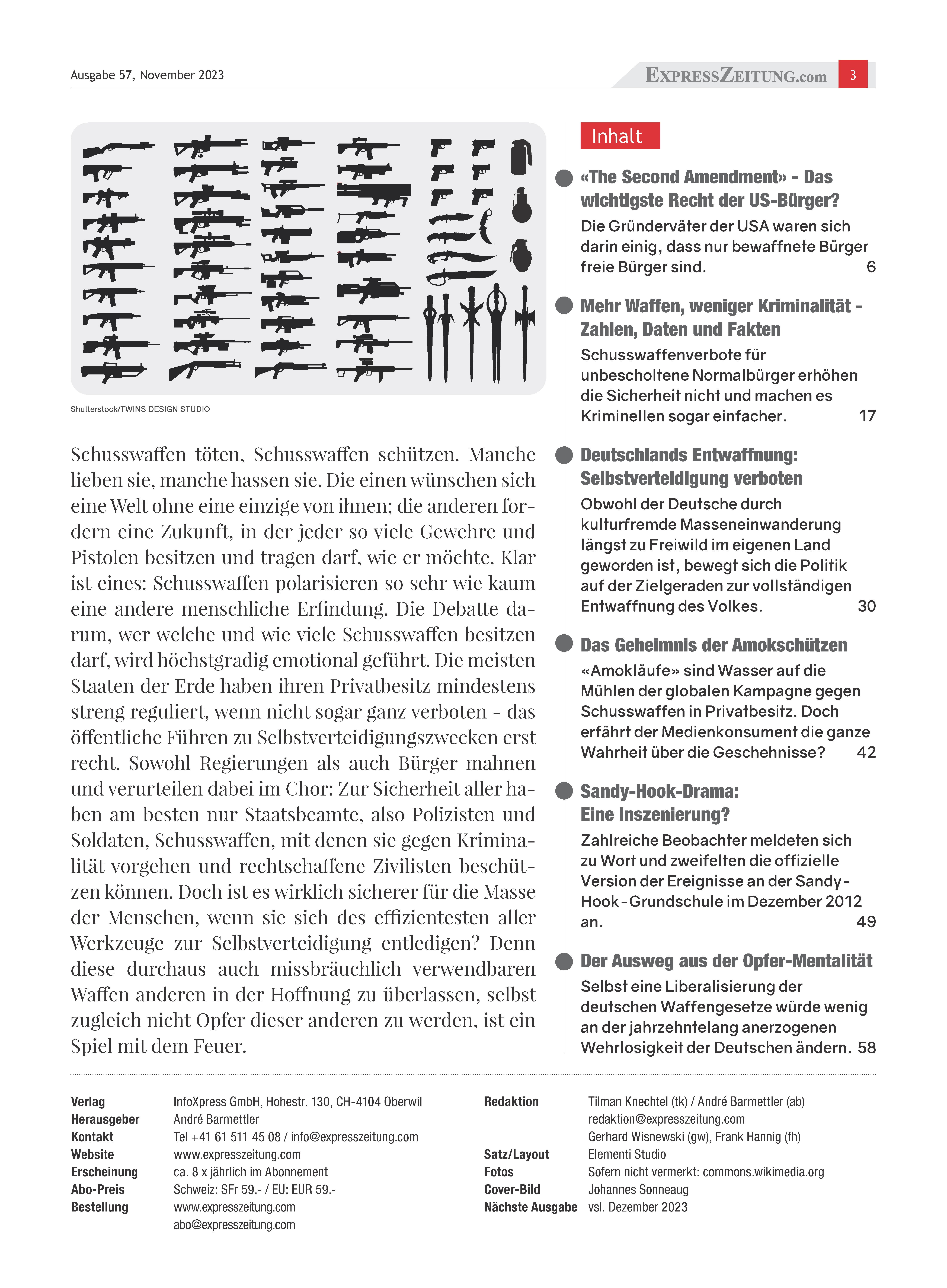 In der vorliegenden Ausgabe betrachten wir die Themen Schusswaffen, Wehrhaftigkeit und zivilen Selbstschutz aus