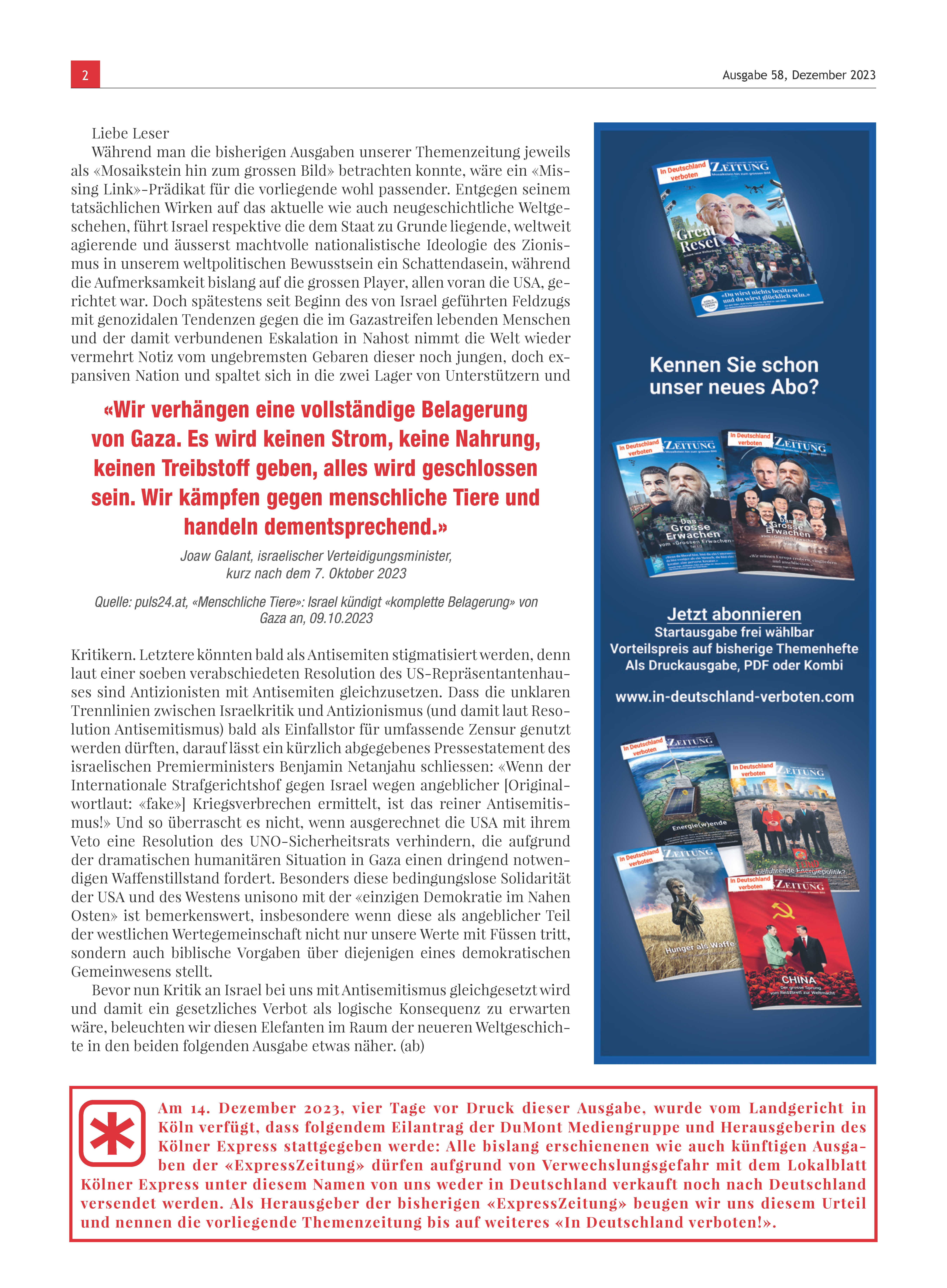 Doppelausgabe 58/59: Israel - Freund und Alliierter?
