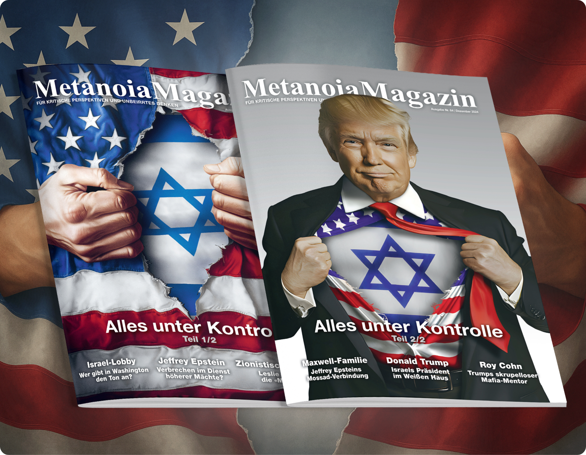 Wir legen vor allem in der zweiten Doppelausgabe Alles unter Kontrolle (Nr. 63/64) ein riesiges Netzwerk offen, das sich zu großen Teilen aus schwerreichen Milliardären zusammensetzt, das vor allem in den USA großen Einfluss auf höchste Ebenen nimmt und somit die Politik, die Medien und letztendlich auch die Gesellschaft zu seinem Vorteil formt. Die höchste, wenn nicht einzige Priorität dabei ist Israel. Hier treffen wir u.a. auf Jeffrey Epstein und dessen Erpressernetzwerk, das bei genauerer Betrachtung einem klaren Interesse folgt.