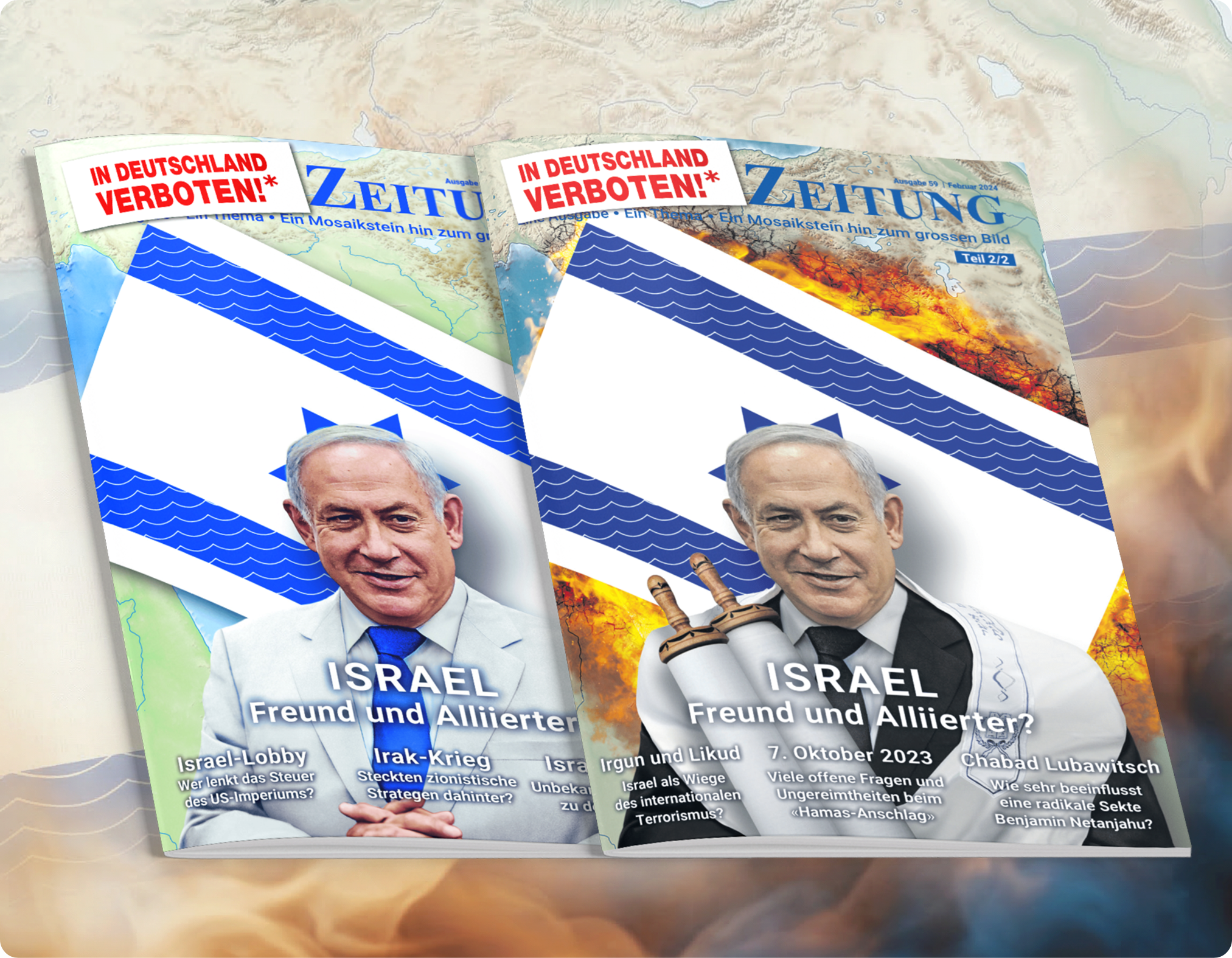 Der Inhalt der ersten Doppelausgaben Israel - Freund und Alliierter? (Nr.58/59) zieht sich von der Staatengründung Israels mit all seinen Konflikten, Kriegen, Massakern durch den Kalten Krieg ins Heute, wo Israel trotz fraglicher Loyalität aufgrund zahlreicher Vorfälle, die sich durch die ganze Staatengeschichte ziehen und nach üblicher Lesart als nicht weniger als Hochverrat erkannt werden müssten, von westlichen Staaten nach wie vor als "wichtigster Verbündeter" gehandelt wird. Eine der großen Ambitionen, die Israel verfolgt, ist "Groß-Israel", ein religiös begründetes Gebiet, das sich vom Euphrat bis zum Nil zieht, also ein riesiges Gebiet, auf dem gleich mehrere arabische Nationen sitzen. Versteht man die religiöse Bedeutung von "Groß-Israel" für den Zionismus, lassen sich viele Konflikte und kriegerische Auseinandersetzungen im Nahen Osten der Jahrzehnte seit Israels Staatsgründung erklären.